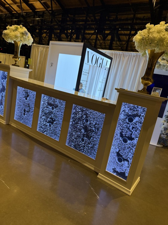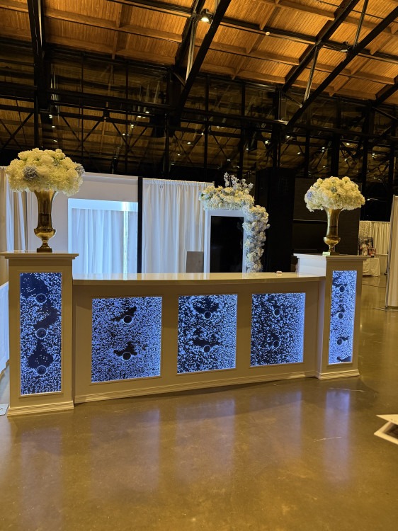 Elevate your event with our stunning 11’ Bubble Bar! This eye-catching bar features water panels with mesmerizing bubbles flowing through them, creating a dynamic and elegant centerpiece for any occasion. Its sleek design, paired with illuminated panels, adds a touch of sophistication and modern charm to weddings, corporate events, or special celebrations.